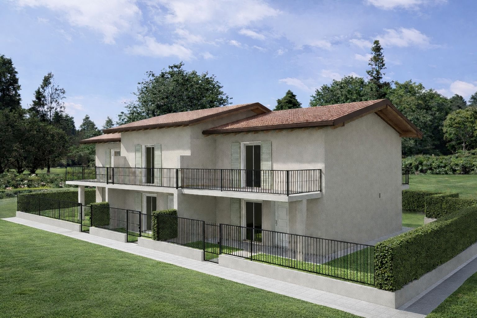 L’intervento nasce con l’obiettivo di realizzare abitazioni dal design contemporaneo, caratterizzate da spazi funzionali, grande luminosità e un forte rapporto con l’esterno grazie agli ampi giardini privati e ai portici coperti, ideali per vivere la casa in ogni stagione.
